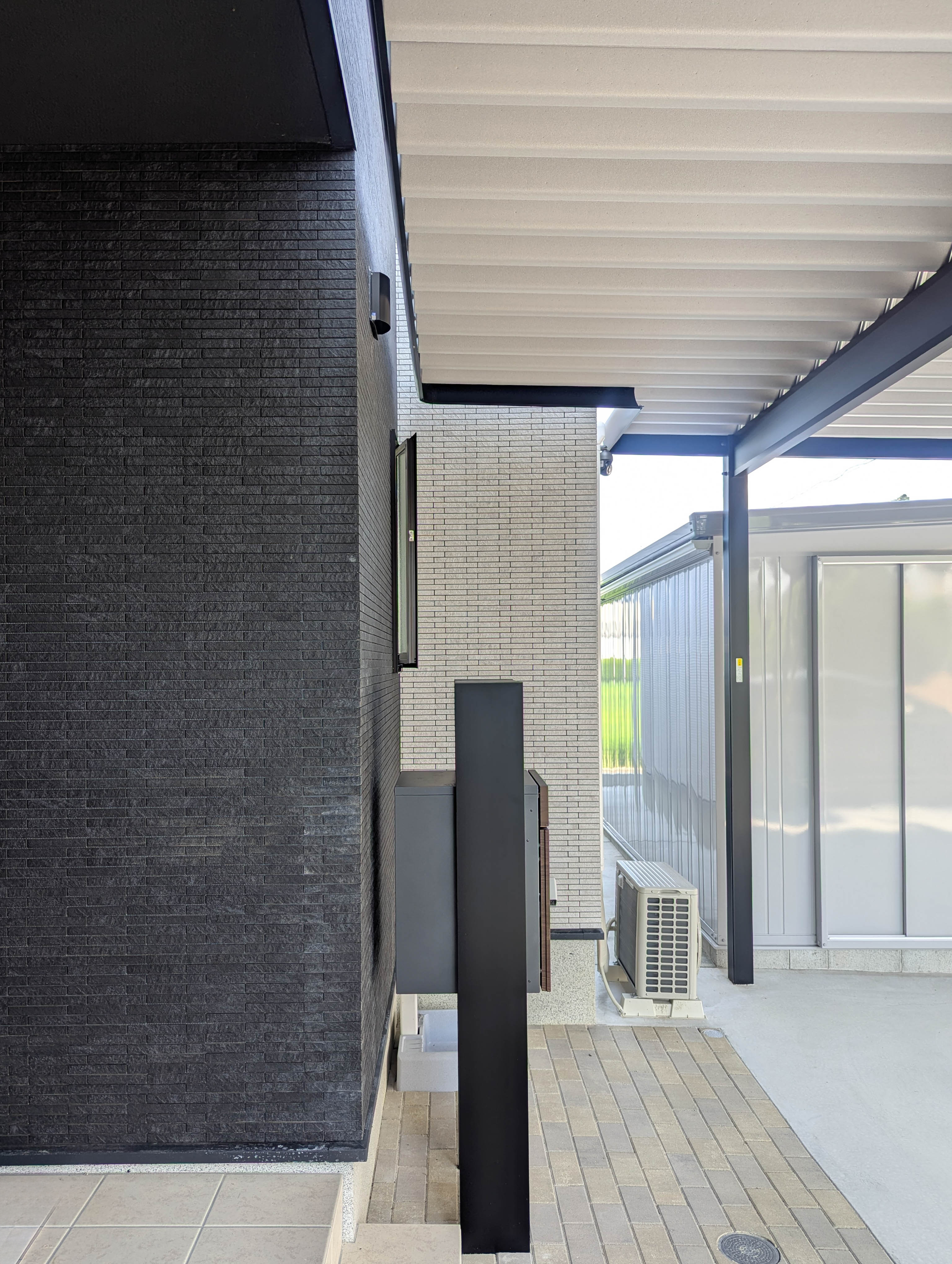 ●ガレージの出入口と玄関ポーチにカーポートを寄せて施工することで雨に濡れずに建物の中に入ることができます。