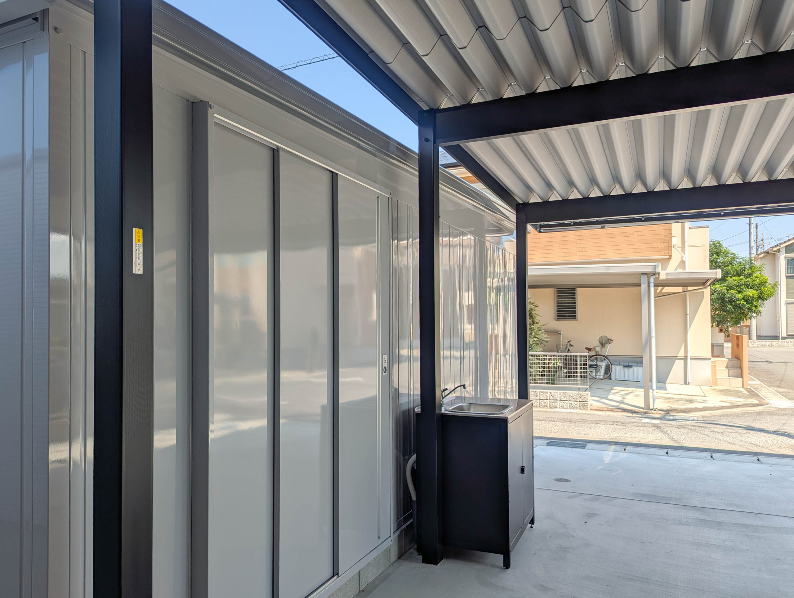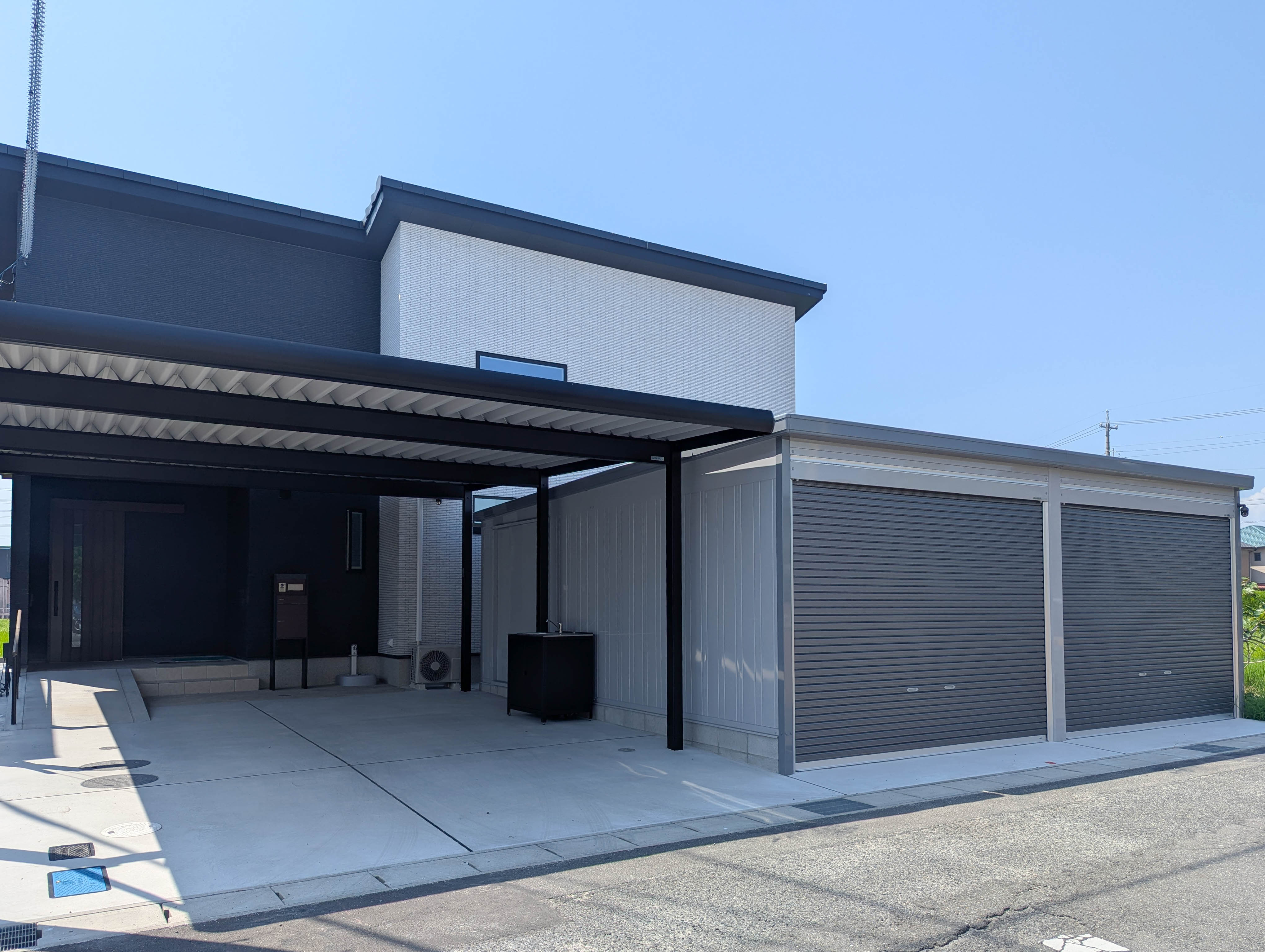 愛西市にて、折板カーポートとガレージを施工させていただきました。