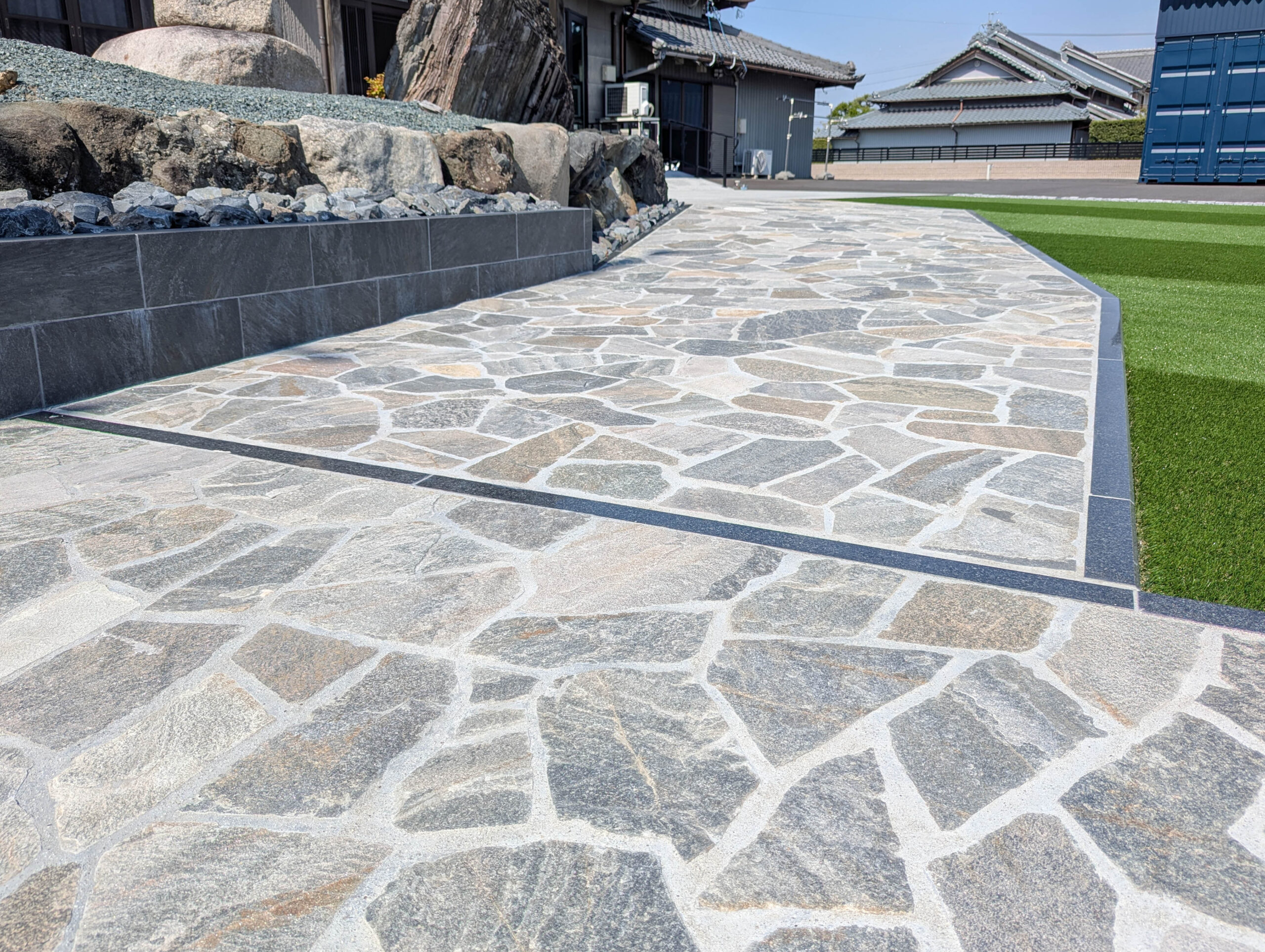 乱形石のアプローチは天然石ならではの色合いや美しさを楽しむことが出来ます。