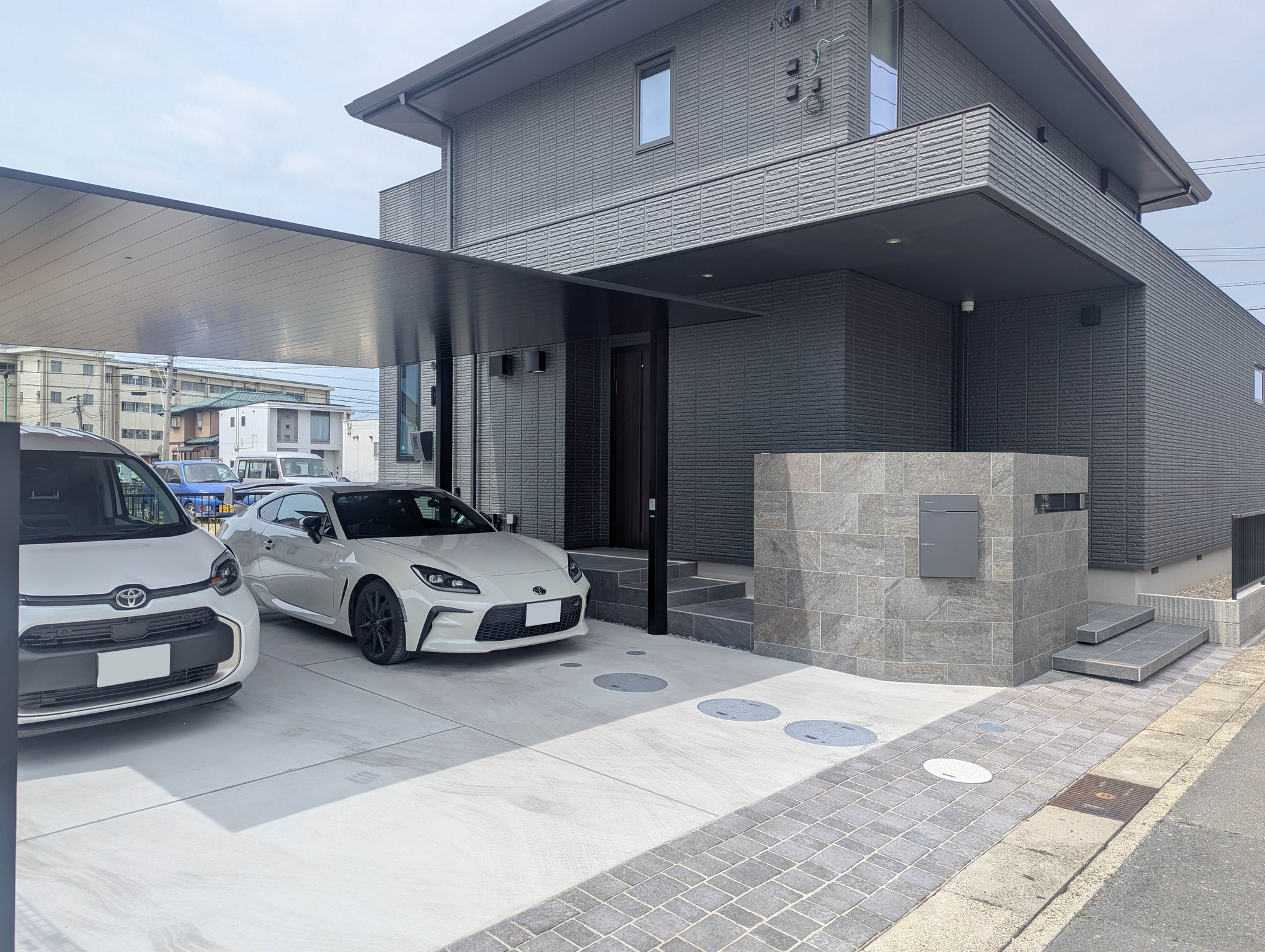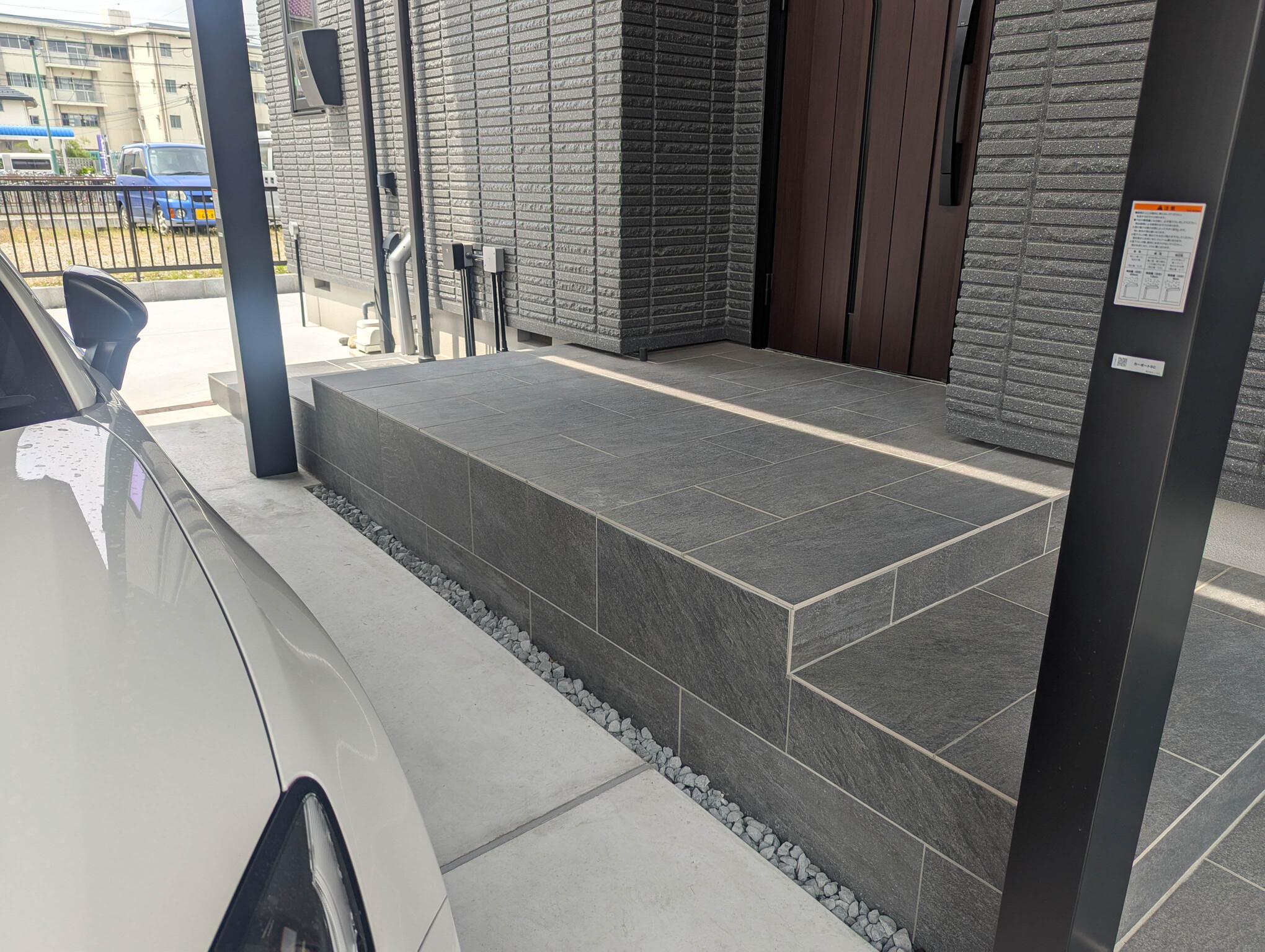 シックな建物との色味を合わせた新築外構。
