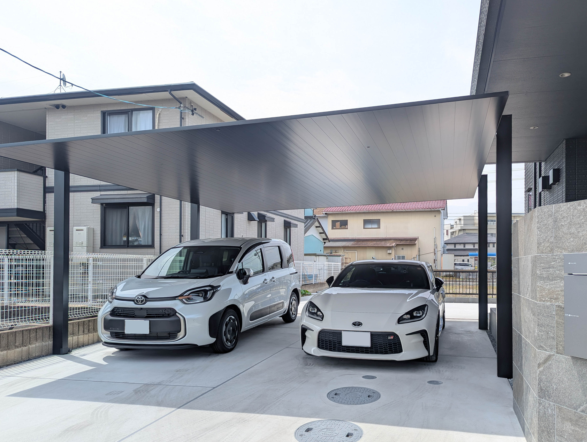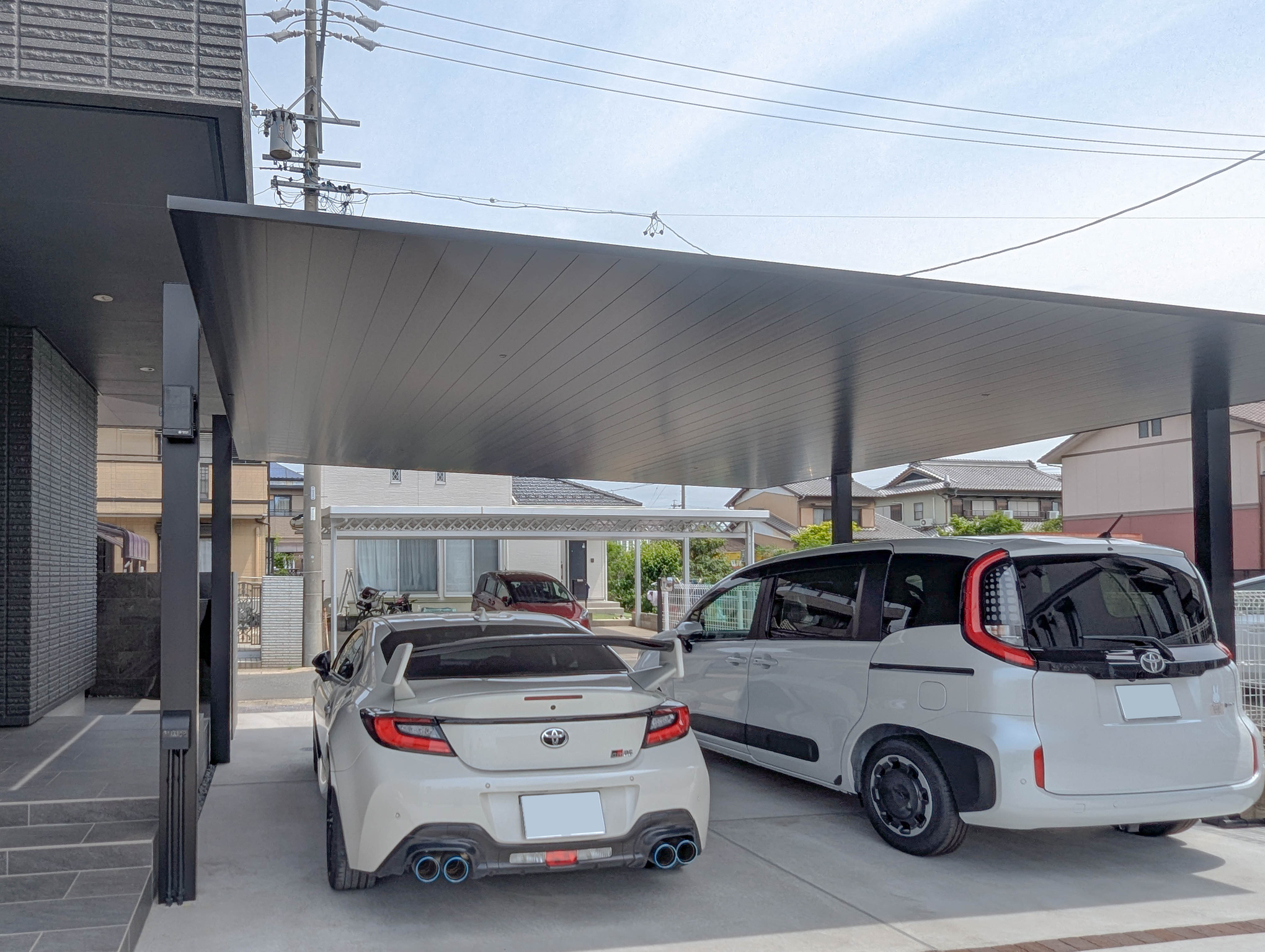 カーポートは屋根を軒下に差し込むことで雨に濡れることなく建物の中に入れます。