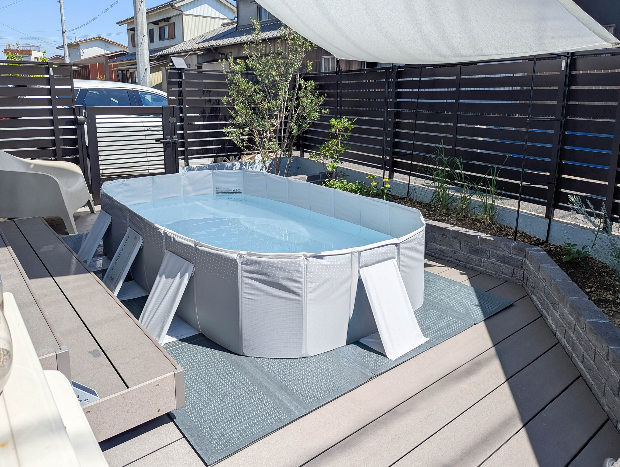 毎年お子様が楽しみにしているビニールプールも傾斜のある地面では遊びにくかったですが、地面も全てウッドデッキを設けフラットにすることで使えるスペースがぐんと広がりました。